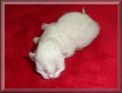 6 Wochen alt. Hab gerade gefressen, man sieht es wohl, bin noch etwas versaut um die Schnauze! :-) |